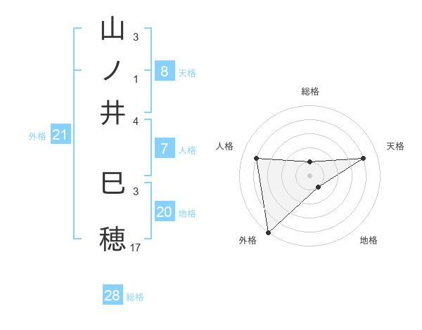 山ノ井 巳穂さんの総格は28画の1点!