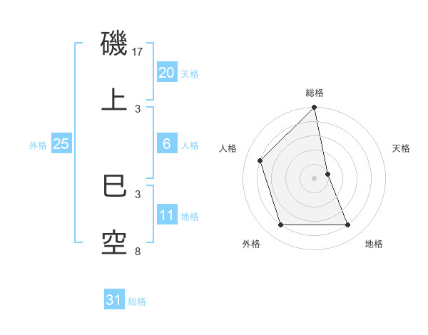 磯上 巳空さんを姓名の画数から五運を鑑定