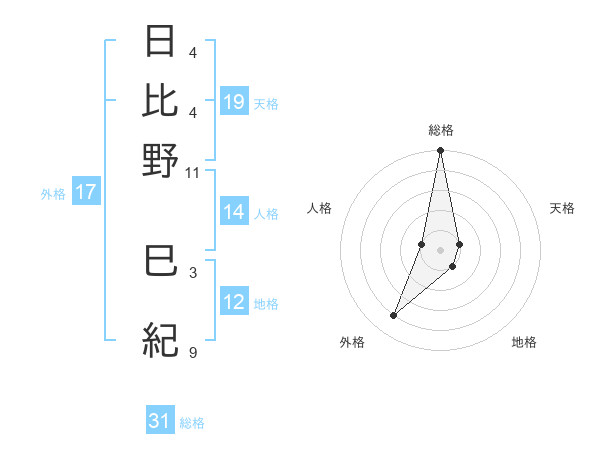 日比野 巳紀さんを姓名の画数から五運を鑑定