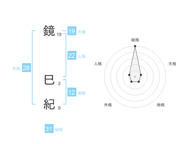 鏡 巳紀さんを姓名の画数から五運を鑑定