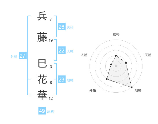 兵藤 巳花華さんの総格は49画の2点!