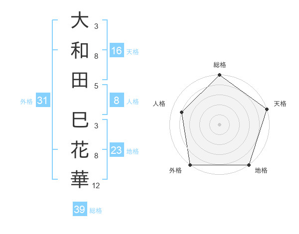 大和田 巳花華さんの外格は31画の5点!