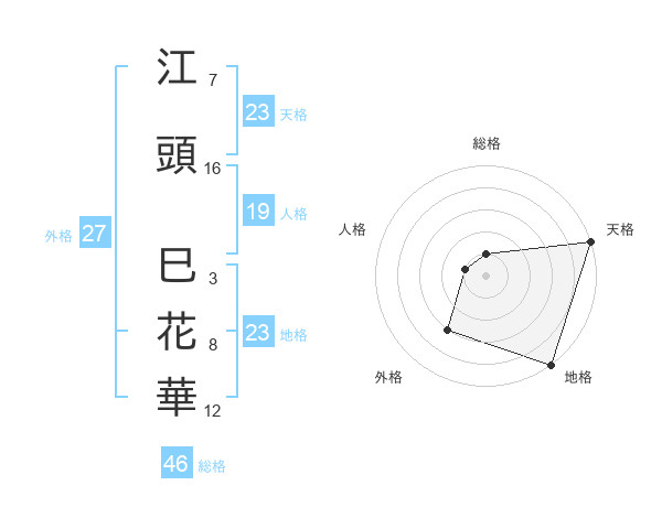 江頭 巳花華さんを姓名の画数から五運を鑑定