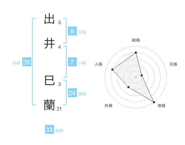 出井 巳蘭さんの総格は33画の4点!