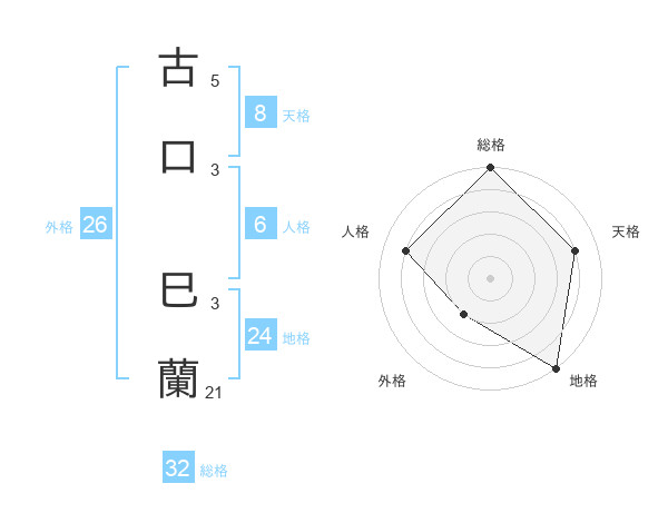 古口 巳蘭さんの総格は32画の5点!