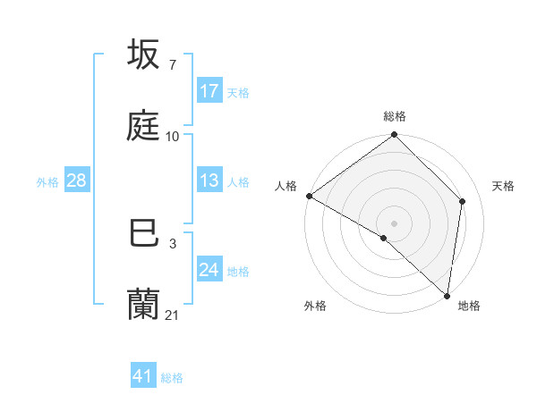 坂庭 巳蘭さんの外格は28画の1点!