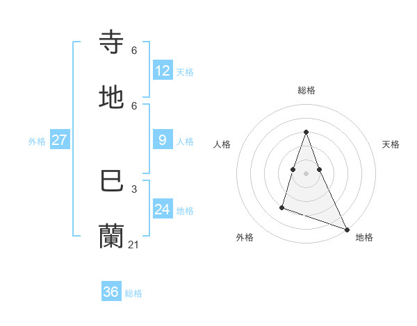 寺地 巳蘭さんを姓名の画数から五運を鑑定