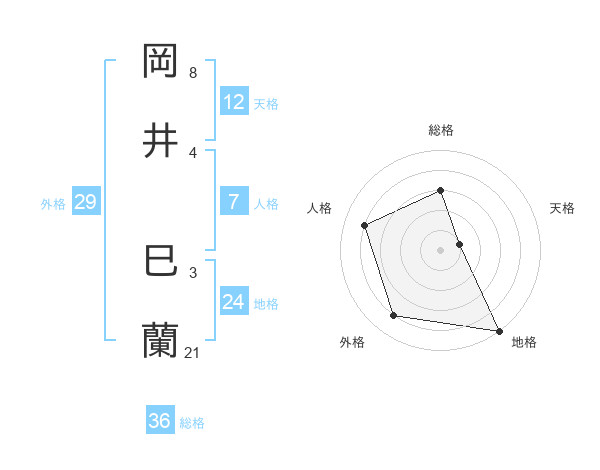 岡井 巳蘭さんを姓名の画数から五運を鑑定