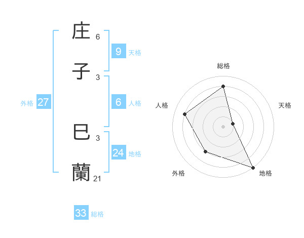庄子 巳蘭さんの総格は33画の4点!