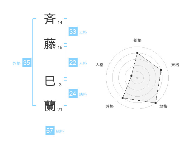 斉藤 巳蘭さんを姓名の画数から五運を鑑定