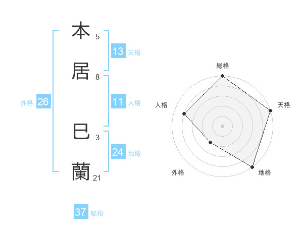 本居 巳蘭さんを姓名の画数から五運を鑑定