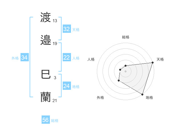 渡邉 巳蘭さんの天格は32画の5点!