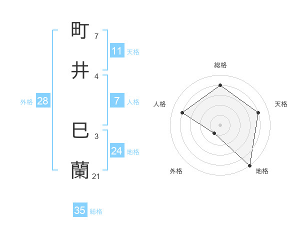 町井 巳蘭さんの総格は35画の4点!