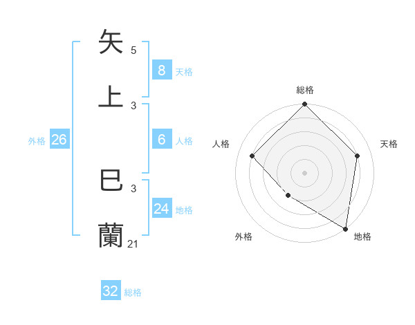 矢上 巳蘭さんを姓名の画数から五運を鑑定