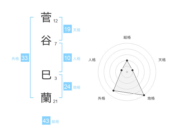 菅谷 巳蘭さんを姓名の画数から五運を鑑定