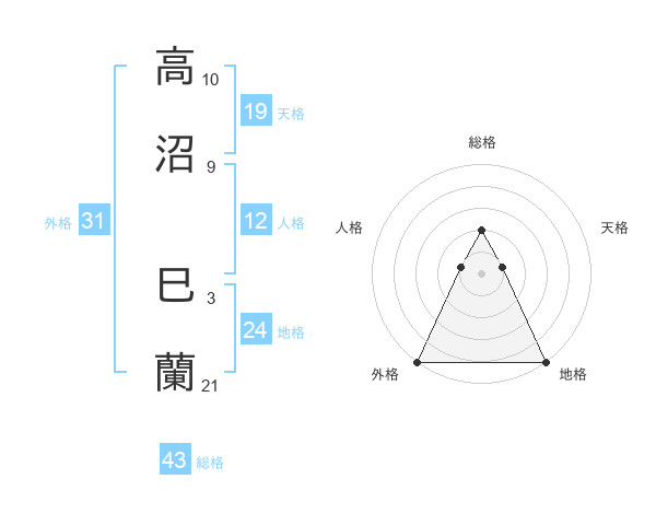 高沼 巳蘭さんの総格は43画の2点!