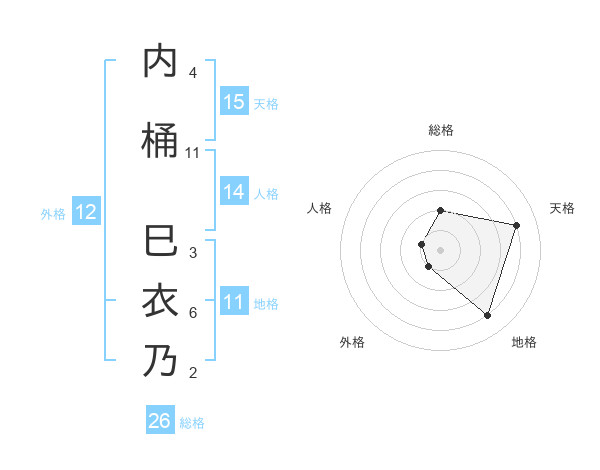内桶 巳衣乃さんの総格は26画の2点!