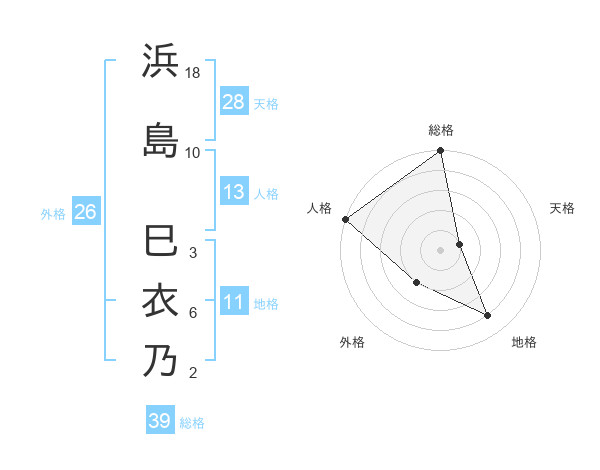 浜島 巳衣乃さんを姓名の画数から五運を鑑定