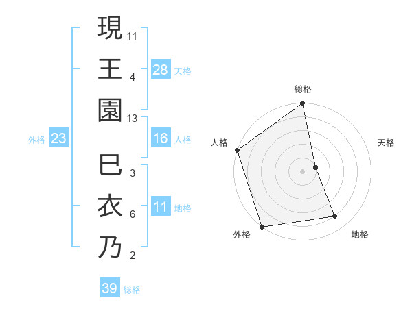 現王園 巳衣乃さんの外格は23画の5点!