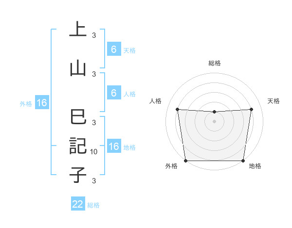 上山 巳記子さんを姓名の画数から五運を鑑定