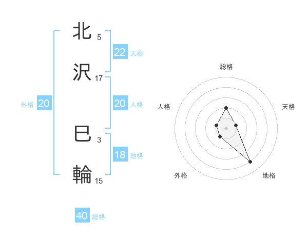 北沢 巳輪さんを姓名の画数から五運を鑑定