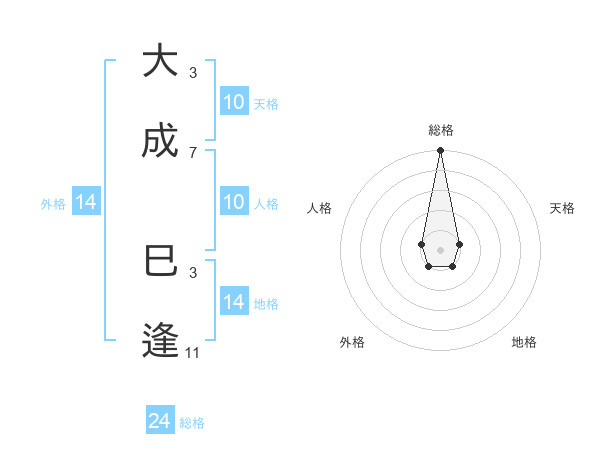大成 巳逢さんを姓名の画数から五運を鑑定