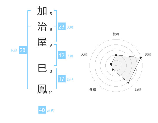 加治屋 巳鳳さんの天格は23画の5点