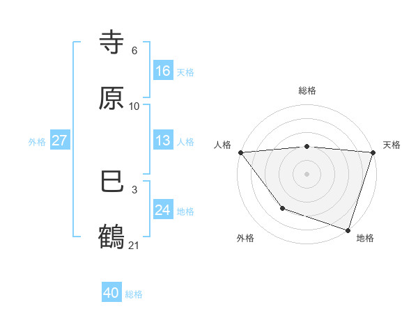 寺原 巳鶴さんの天格は16画の5点!