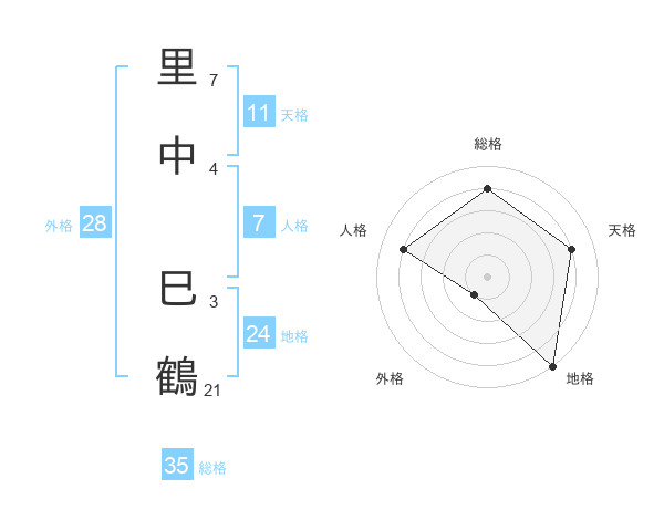 里中 巳鶴さんの総格は35画の4点!
