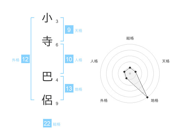 小寺 巴侶さんの総格は22画の1点!