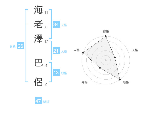 海老澤 巴侶さんを姓名の画数から五運を鑑定