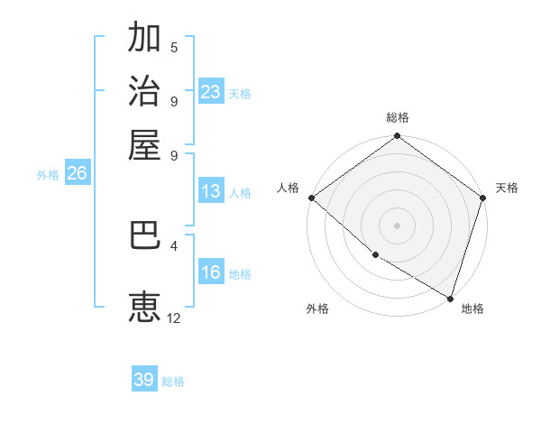 加治屋 巴恵さんを姓名の画数から五運を鑑定