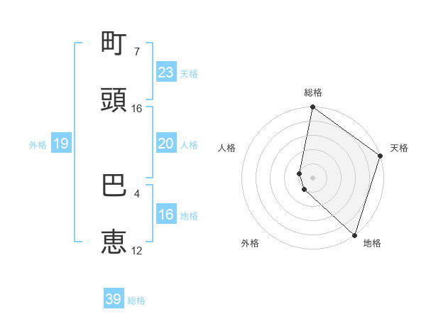 町頭 巴恵さんを姓名の画数から五運を鑑定