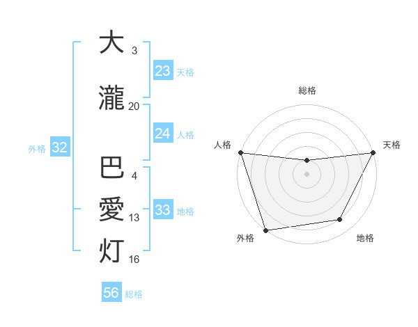 大瀧 巴愛灯さんの外格は32画の5点!