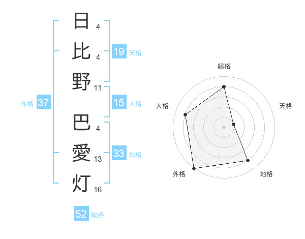 日比野 巴愛灯さんを姓名の画数から五運を鑑定