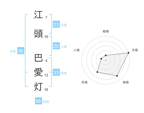 江頭 巴愛灯さんの総格は56画の1点!