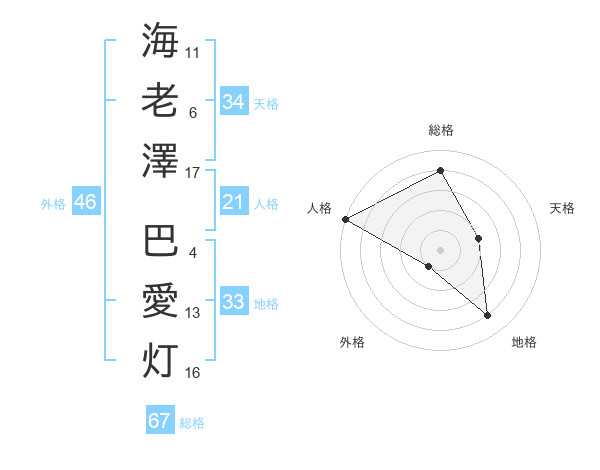 海老澤 巴愛灯さんを姓名の画数から五運を鑑定
