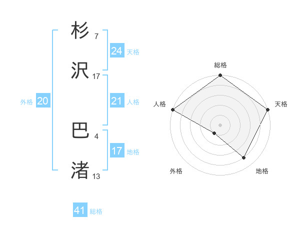 杉沢 巴渚さんの天格は24画の5点!