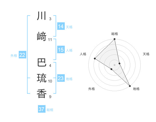 川﨑 巴琉香さんの総格は37画の5点!
