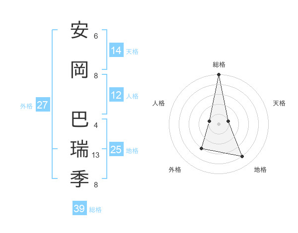 安岡 巴瑞季さんを姓名の画数から五運を鑑定