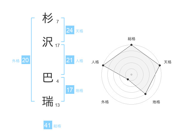 杉沢 巴瑞さんの天格は24画の5点!