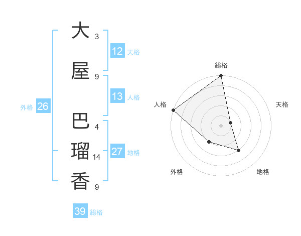 大屋 巴瑠香さんを姓名の画数から五運を鑑定