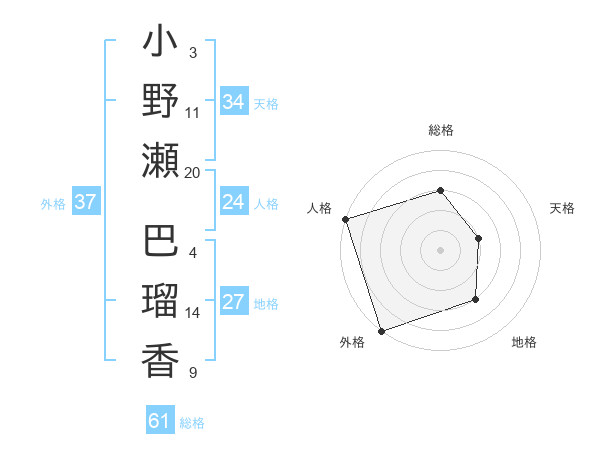 小野瀬 巴瑠香さんを姓名の画数から五運を鑑定