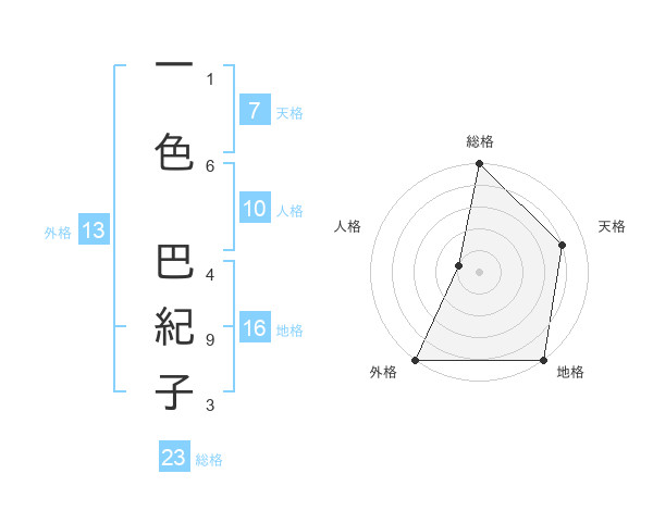 一色 巴紀子さんを姓名の画数から五運を鑑定