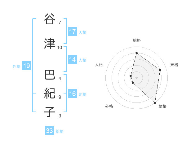 谷津 巴紀子さんの総格は33画の4点!