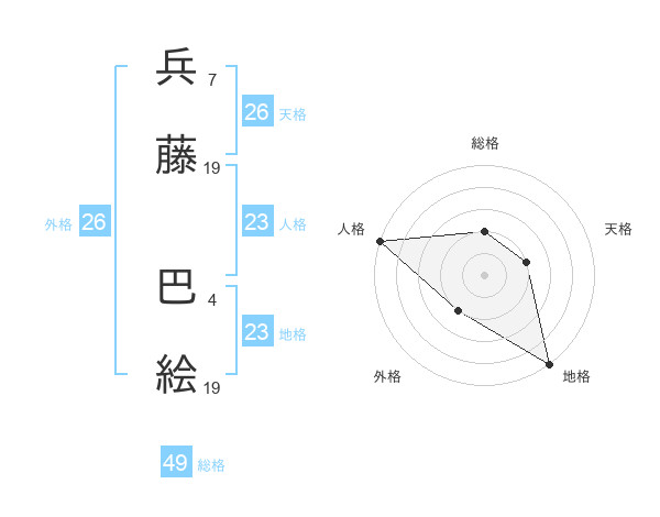 兵藤 巴絵さんを姓名の画数から五運を鑑定