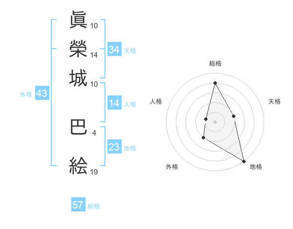 眞榮城 巴絵さんを姓名の画数から五運を鑑定