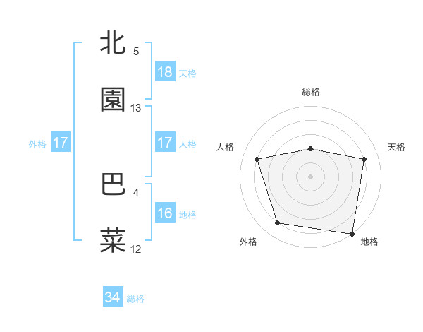 北園 巴菜さんの外格は17画の4点!