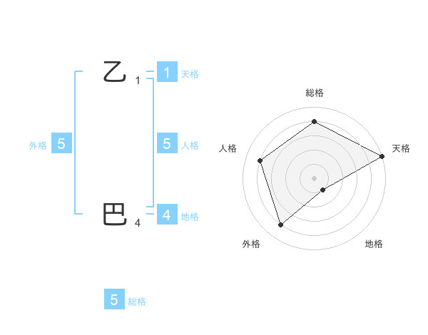 乙 巴さんの総格は5画の4点!