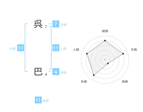 呉 巴さんの総格は11画の4点!